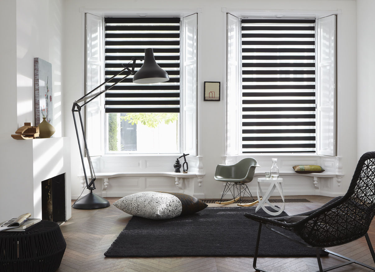 Le store rouleau design est un store novateur contemporain. Composé de deux panneaux de tissus coulissant l’un devant l’autre et entrecoupés de bandes horizontales, il permet un dosage optimal de la lumière, en toute aisance et élégance. Une fois fermé, il préservera parfaitement votre intimité.